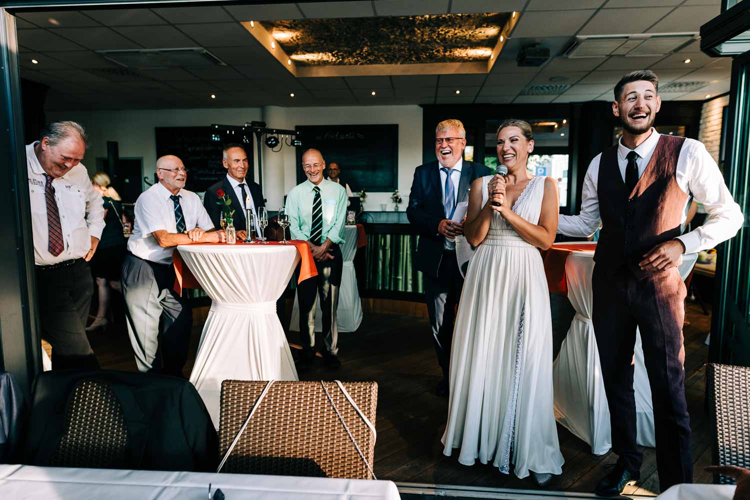 Nach dem quirligen und lustigen Geschehen auf dem Kirchvorplatz hatten wir noch einen kurzen Abstecher für ein paar Bilder. Bevor es im Anschluss im Cologne’s in Solingen weiterging. Es war so ein fantastisches spätsommerliches Wetter, dass sich die Hochzeitsfeier eigentlich hauptsächlich vor der lockeren Location mitten in der Solinger City abspielte. Und da wir ja gerade schon gedanklich beim Kino waren. Leute, was Christian mitten auf dem Platz abgezogen hat - WTF!!! Da würde ich glatt meinen Hut ziehen. Wenn es nicht gehießen hätte: “You can leave your hat on”. Er hat sich in einer absolut abgefahrenen Nummer das Strumpfband seiner Liebsten erobert. So eine coole Show von den beiden. Da konnte selbst der grandiose Hochzeitstanz später nicht mehr gegen ankommen …