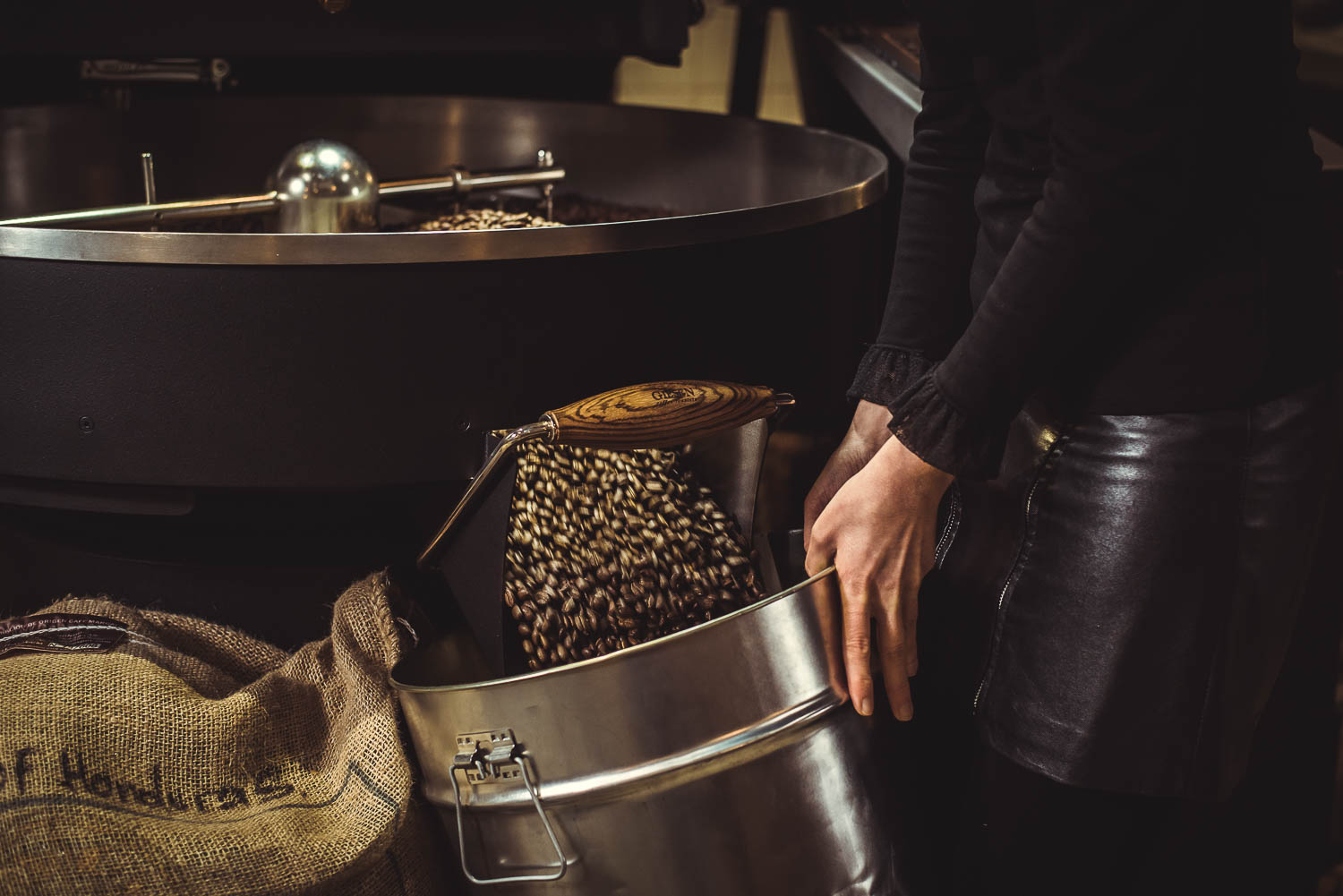 Glücklicherweise stellte sich nach einiger Zeit heraus, dass ich nicht nur ihren Kaffee liebe, sondern sie auch begeistert sind von meinen Bildern. Und so durfte ich mittlerweile nach dem Umzug der Rösterei in größere Hallen auch mehrmals mit meinen Kameras dabei sein. Es macht jedes Mal so viel Spaß und meine Kleidung duftet danach noch immer lange nach dem besten Kaffee. Ein regelmäßiger Koffeinschock ist immer inklusive:). Und einige meiner Bilder zieren nun in “Megasize” die Fenster und Türen des Eingangsbereichs. Es lohnt sich immer hier vorbei zu kommen, die Rösterei ist permanent im Wandel. Und für die Kamera gibt es nach den anfänglichen Bildern vom Rösten und der Barista Kunst auch immer weiter schöne Möglichkeiten emotionale Produktbilder für Instagram, facebook und Co. festzuhalten.