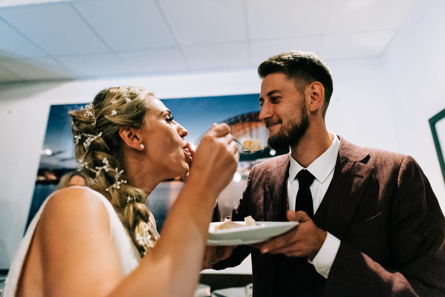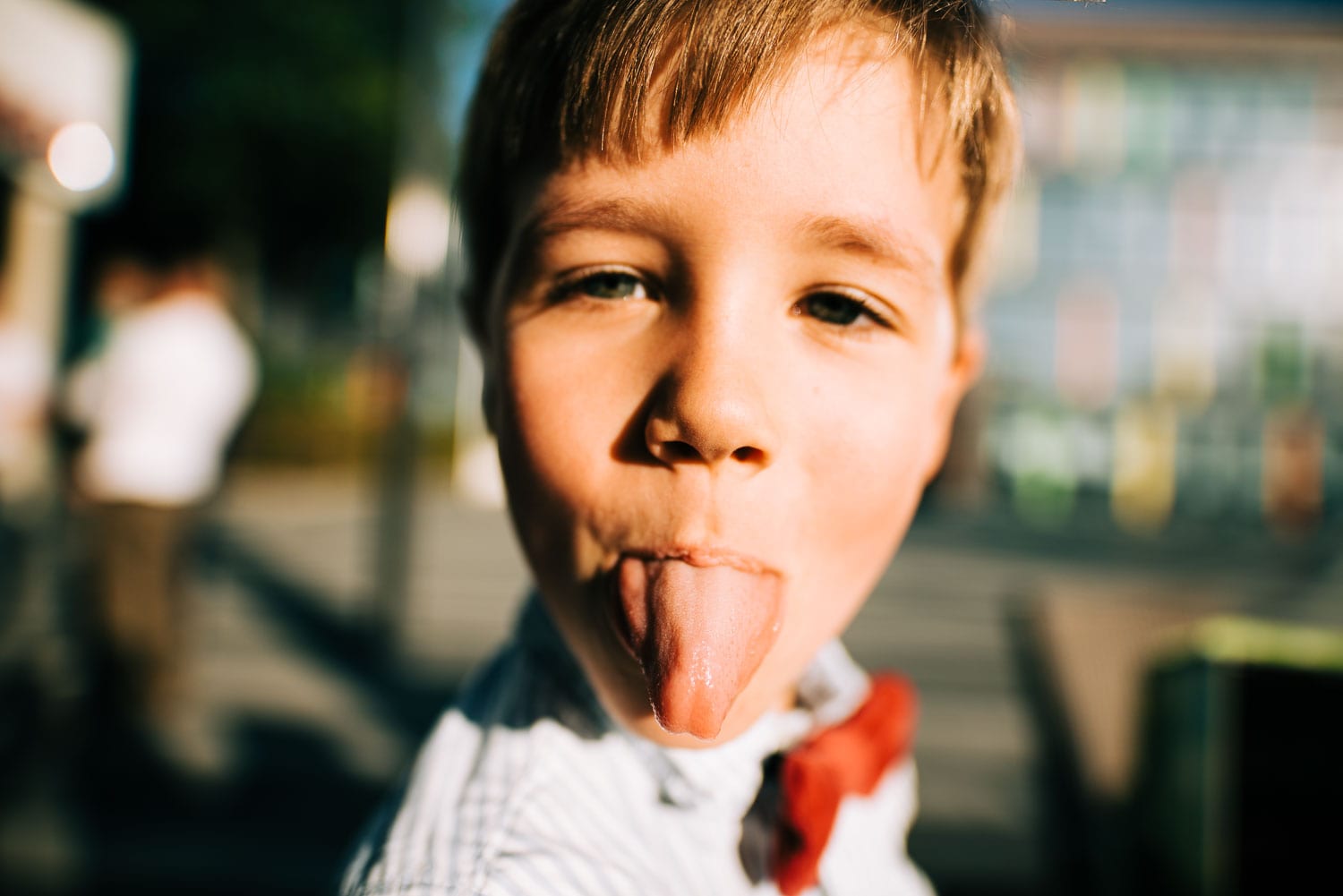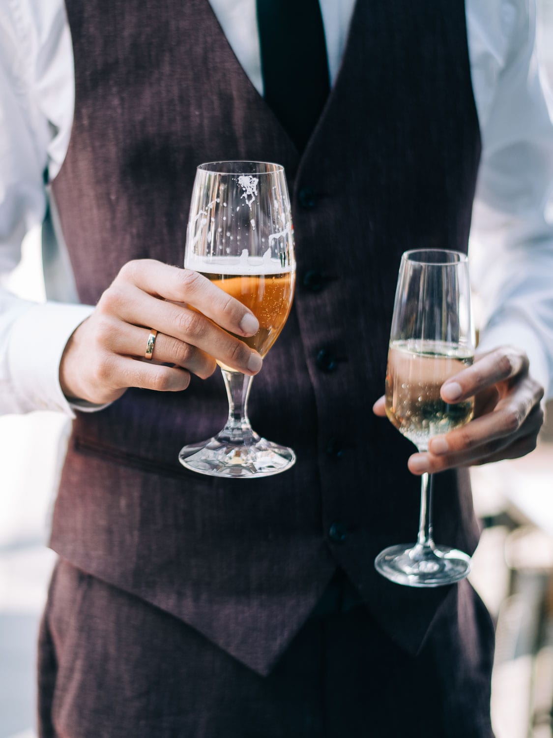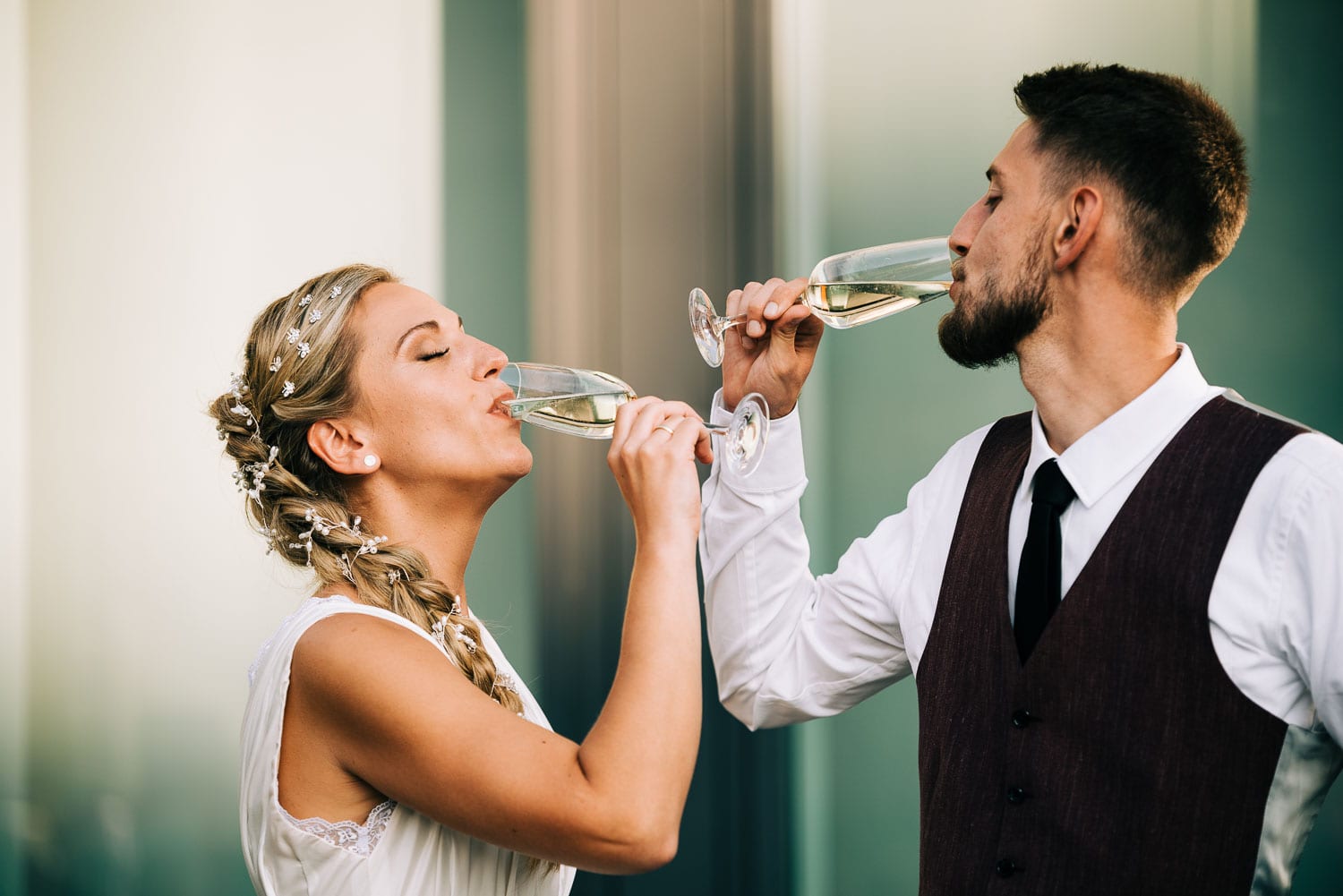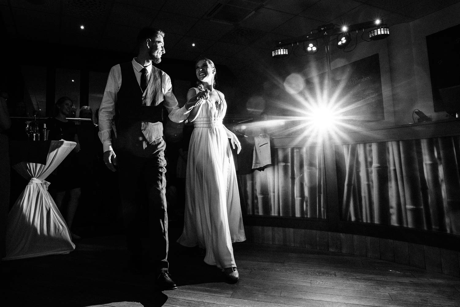 Nach dem quirligen und lustigen Geschehen auf dem Kirchvorplatz hatten wir noch einen kurzen Abstecher für ein paar Bilder. Bevor es im Anschluss im Cologne’s in Solingen weiterging. Es war so ein fantastisches spätsommerliches Wetter, dass sich die Hochzeitsfeier eigentlich hauptsächlich vor der lockeren Location mitten in der Solinger City abspielte. Und da wir ja gerade schon gedanklich beim Kino waren. Leute, was Christian mitten auf dem Platz abgezogen hat - WTF!!! Da würde ich glatt meinen Hut ziehen. Wenn es nicht gehießen hätte: “You can leave your hat on”. Er hat sich in einer absolut abgefahrenen Nummer das Strumpfband seiner Liebsten erobert. So eine coole Show von den beiden. Da konnte selbst der grandiose Hochzeitstanz später nicht mehr gegen ankommen …