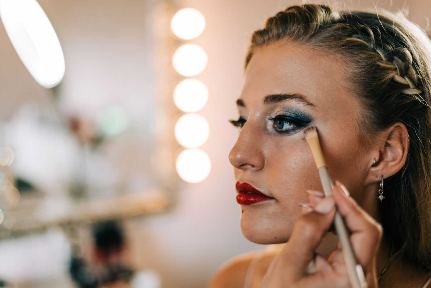 Der Tag ging los bei Yenice Beauty in Wuppertal Innenstadt. Emel macht einfach, gefühlt in wenigen Minuten, ein dermaßen fantastisches Braut Make-Up - das ist der Hammer. Vor allem schafft sie es einzelne Wimpern so schnell und präzise zu platzieren. Feinmotorik ist definitiv eine Fähigkeit, die bei mir völlig unterentwickelt ist, daher staune ich jedes Mal wieder aufs Neue. Mit bei der Verwandlungsaktion unser beiden Models Juli und Joyce war Aylin von Aylins Friseursalon, sie zauberte zwei total unterschiedliche Brautfrisuren für die beiden.