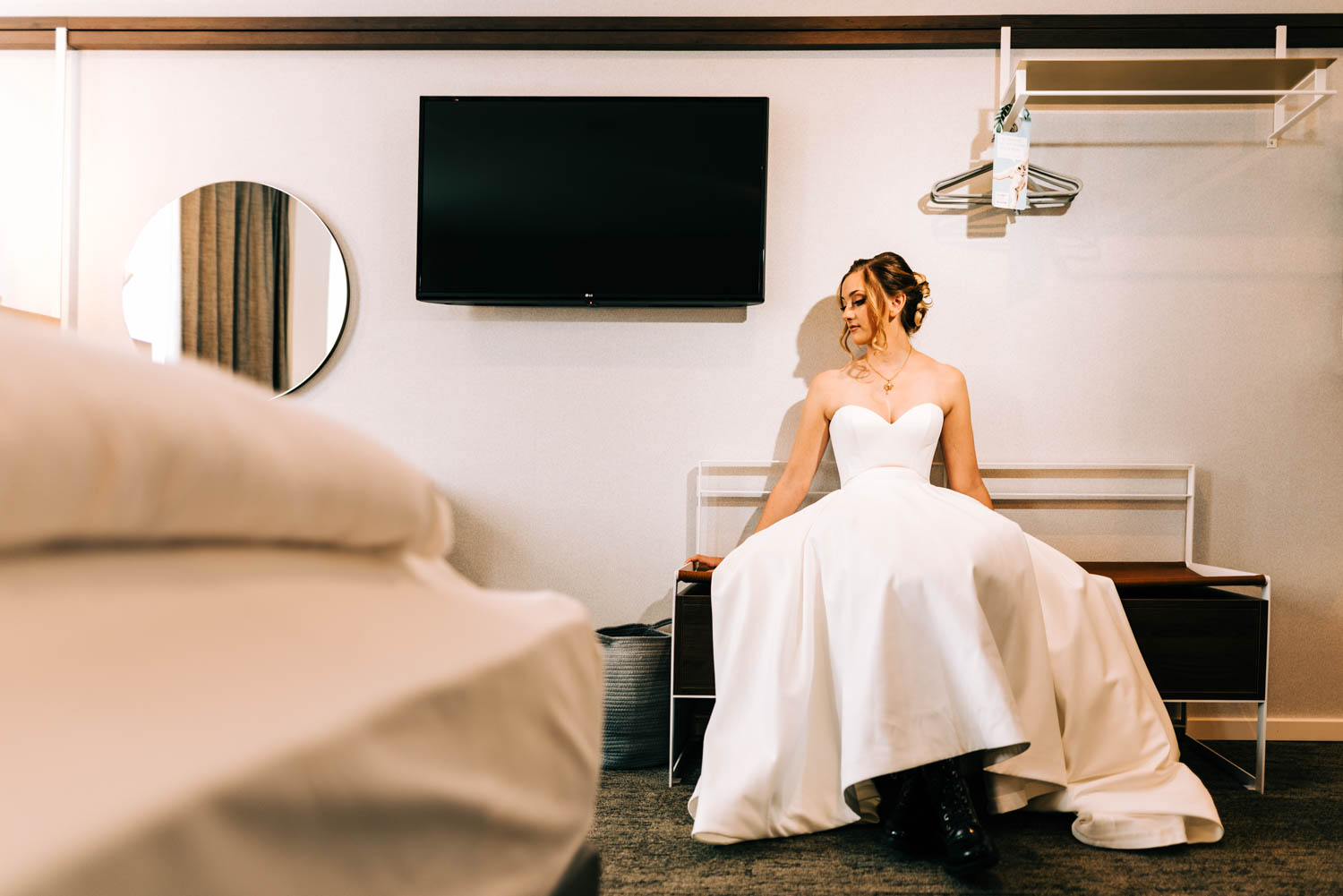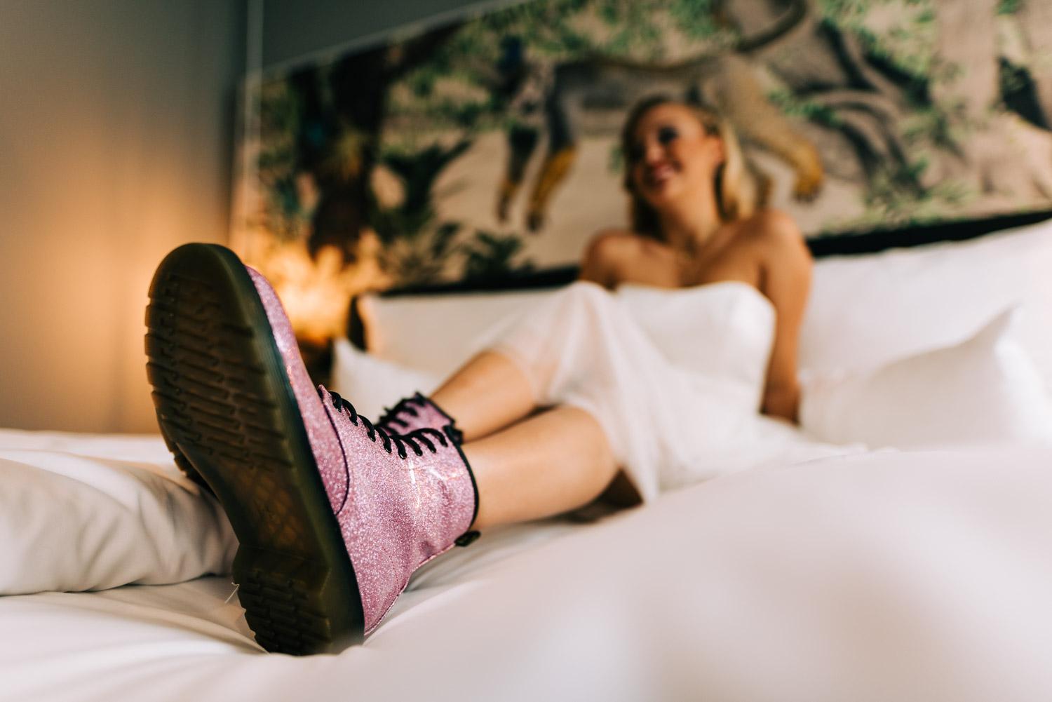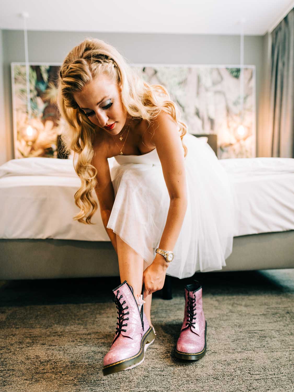 Dann ging es gleich eine Straße weiter ins NinetyNine Hotel. Und da kann ich nur sagen “WTF”, was für eine fotogene Location. Ursprünglich wollten wir nur ein wenig “Getting Ready” in einem Zimmer machen, aber beim Anblick des unteren Bereiches ist es mit uns durch gegangen. Also falls ihr zufällig vor habt eure Hochzeit in Wuppertal zu feiern und braucht noch einen Ort fürs Ankleiden, hier würde ich wirklich sehr gerne zum Fotografieren vorbei kommen :).