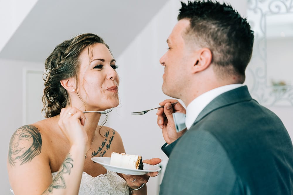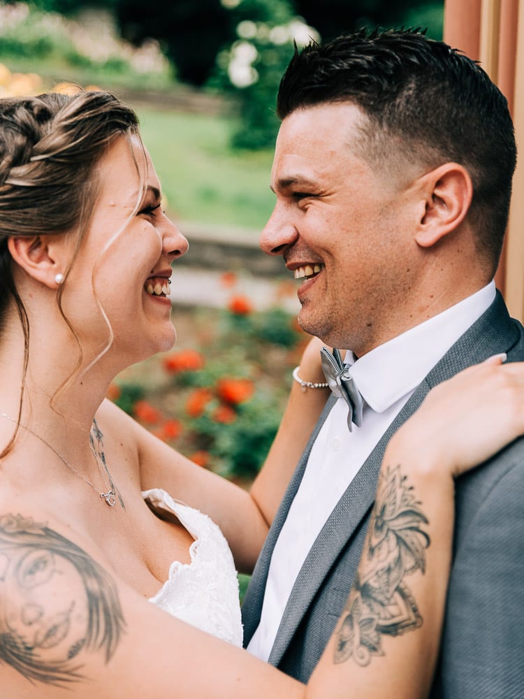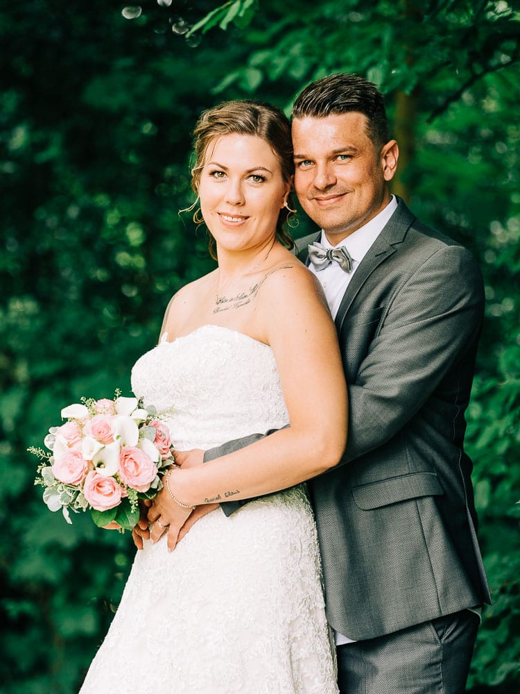 Das tolle an dieser Location ist, dass es so viel Abwechslung drumherum gibt für ein schönes Portraitshooting ohne dass das Brautpaar lange von den Gästen getrennt werden muss. Der tolle Rosengarten mit seinem Pavillon und auch gleich ein kleines Waldstück neben dran. Im Anschluss ging es zurück nach Remscheid in die Hochzeitslocation beim “Bauer Wette”. Dort wurde die super Torte angeschnitten und natürlich mit den Gästen gefeiert.