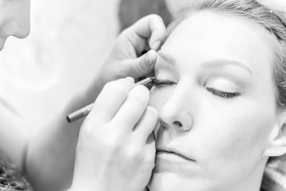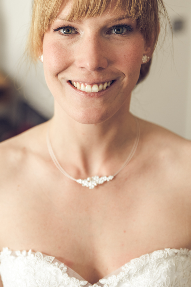 Schon früh morgens traf ich mich mit Lea bei dem Friseur “Kopfarbeit” in Haan. Während die Familie drum herum ihre Hochzeitsfrisur gestylt bekamen, war Freundin Ruth dabei der Braut ihr megaschönes Make-Up aufzutragen. Für sie ist Schminken nur ein Hobby, was man weder bei der Durchführung noch bei dem Ergebnis vermuten konnte. Danach hatte die Friseurin alle Hände voll zu tun, um die dezente und trotzdem besondere Frisur, eine Mischung aus Flechtwerk und Dutt, zu kreieren. Bei allen im Raum stieg langsam die Nervosität, nur die Braut blieb völlig relaxt.