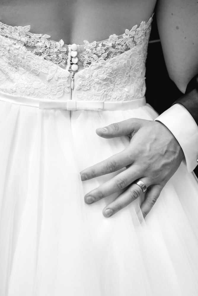 Zum Ankleiden fuhren wir nach Solingen Gräfrath ins Hotel. Und auch hier lag bei Brautmutter und Schwester doch ein wenig Aufregung beim Sortieren der Sachen in der Luft. Nur Lea war immer noch entspannt und betrachtete ein wenig amüsiert das Treiben. Doch mit dem hineinschlüpfen in das Brautkleid stieg, denke ich, auch ihr Puls ein wenig:). Sie hatte schon den ganzen Morgen gestrahlt, aber mit dem Kleid kam auch das besondere Leuchten in den Augen - für mich persönlich das schönste Detail auf einer Hochzeit.