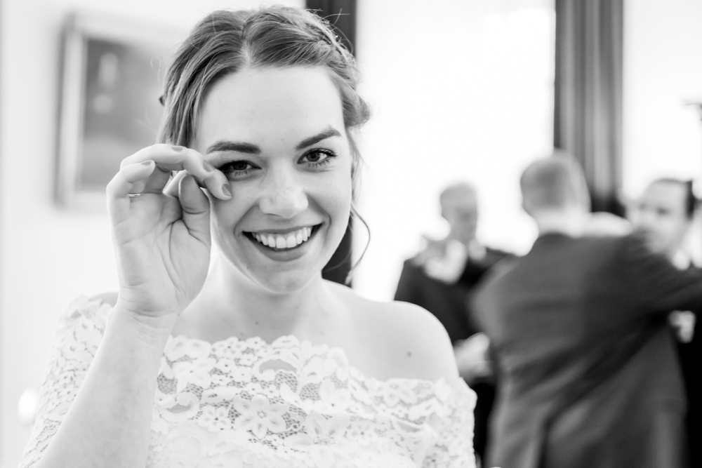Doch dann wurde es doch noch einmal ernst. Als der Standesbeamte Trauzeugen und Brautpaar für die letzten Formalitäten ins Rathaus bat, ging gefühlt bei jedem noch einmal der Puls nach oben. Das kleine Trauzimmer im Remscheider Standesamt wurde bis zum Anschlag ausgefüllt. Als der Standesbeamte begann, war die Enge und Hitze im Raum jedoch schnell vergessen. Er führte wirklich mit viel Humor und Lachen durch die Trauung.