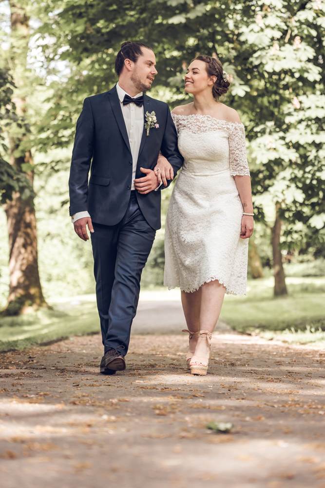 Beim anschließenden Paarshooting im unteren Teil des Remscheider Stadtparks waren die beiden komplett entspannt und Non-Stop strahlend. Während wir uns den Portraitbildern der Hochzeit widmeten, arbeiteten Trauzeugen, Freunde und Familie, um Haus und Garten fertig zu schmücken für die erste Heimkehr als Brautpaar.